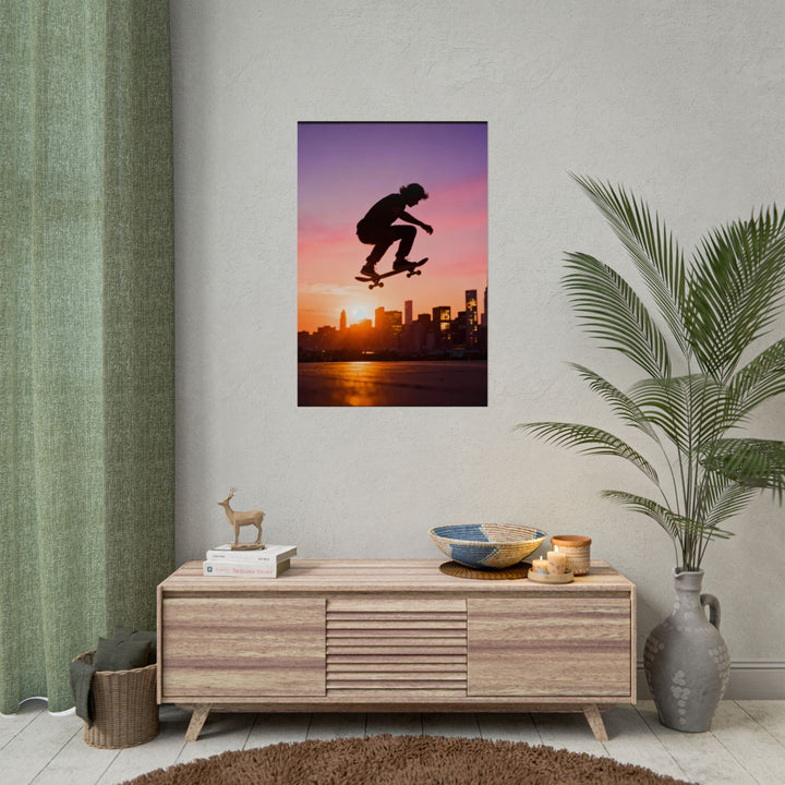 Skateboarder Sunset Rolled Poster - Urban Vibe Wall Art